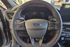 * Kierownica wykończona skórą ekologiczną Sensico, spłaszczona u dołu, z czerownymi przeszyciami