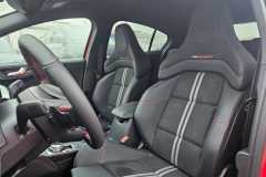 - Fotele – z tapicerką częściowo skórzana ciemna Twin Track/ skóra ekologiczna Sensico z czerwonymi przeszyciami
